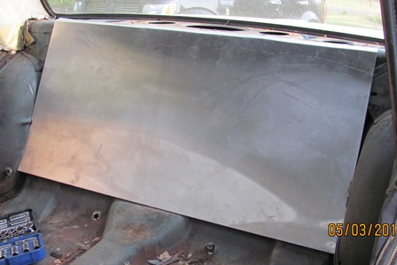No word on the new trunk floor, but I got the back seat firewall made. It doesn't need to be pretty as it will be covered with carpet.