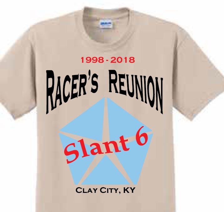 I finally got the T-shirt figured out with the local printer. This is a fund raiser for the Racer's Reunion at Clay City. The shirts are a good quality Gildan brand and you have several color options. There are some long sleeve options and I even thought of Will Burns and asked them for some Tank Top options! :wink: