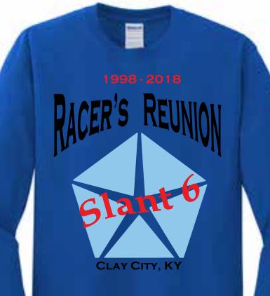 I finally got the T-shirt figured out with the local printer. This is a fund raiser for the Racer's Reunion at Clay City. The shirts are a good quality Gildan brand and you have several color options. There are some long sleeve options and I even thought of Will Burns and asked them for some Tank Top options! :wink: