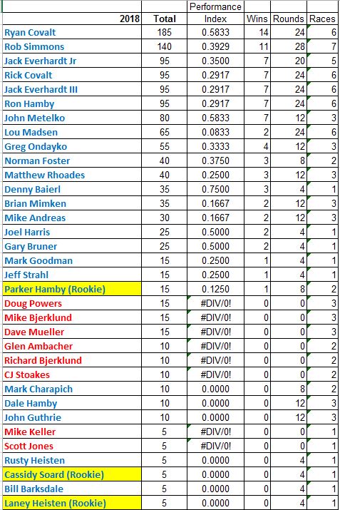 Here are the points earned at Clay City. More commentary and the National points update coming shortly...