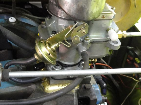I think I may have figured out a idea. I've got 4 old single barrel carbs and one had a rod with a 1/8 slot about 3 inches long. I think I can rig up a linkage that will go through the slot and pull on the pump first, and then when the slot bottoms out on the butterfly linkage it will open the throttle blades. Never really thought of that cause I've never seen a direct linkage right on the accelerator pump before. Instead of having holes through the throttle blades this carb has holes just above the blades to the outside of the carb. I don't like the holes to unfiltered outside air. This would be a big issue if I still lived on gravel but since I'm in town now I don't think there's enough dust being stirred up regularly to destroy the engine. The high idle is a little better and I think when I get the linkages done a little more spring pressure will help that out also. Ill post a pic when I get the linkages done.