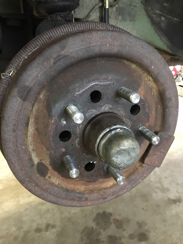 Thanks. I redrilled the fronts. There's plenty of meat there. The trick, in my experience, is to never separate the hub from the drum. I drilled and tapped them together (1/2"-20)and installed the new studs before driving out the old studs. I didn't bother measuring runout with a dial indicator because...the eyeball indicator shows there is essentially no runout.