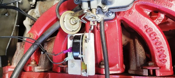 Next I bent the actuator rod to attach to the carb, making sure it moved freely. I also placed a stainless washer on the rod where it goes into the actuator body to keep it moving in a straight axis, using new speed/push nuts to keep the rod in line with the actuator body.