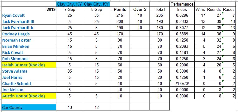 Congratulations to Rodney on winning both races! I think its the 3rd time he doubled up wins at clay city. Very impressive!