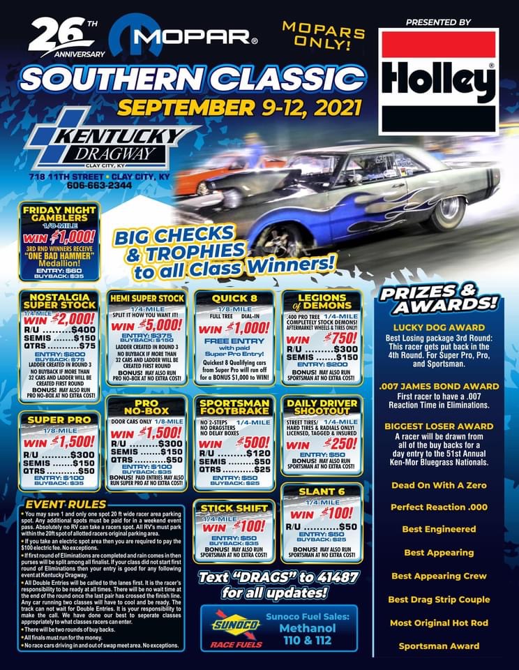 Even More Bonuses: Fellow Slant 6 Racers will kick in for a bigger purse if we can get 10 cars there.
