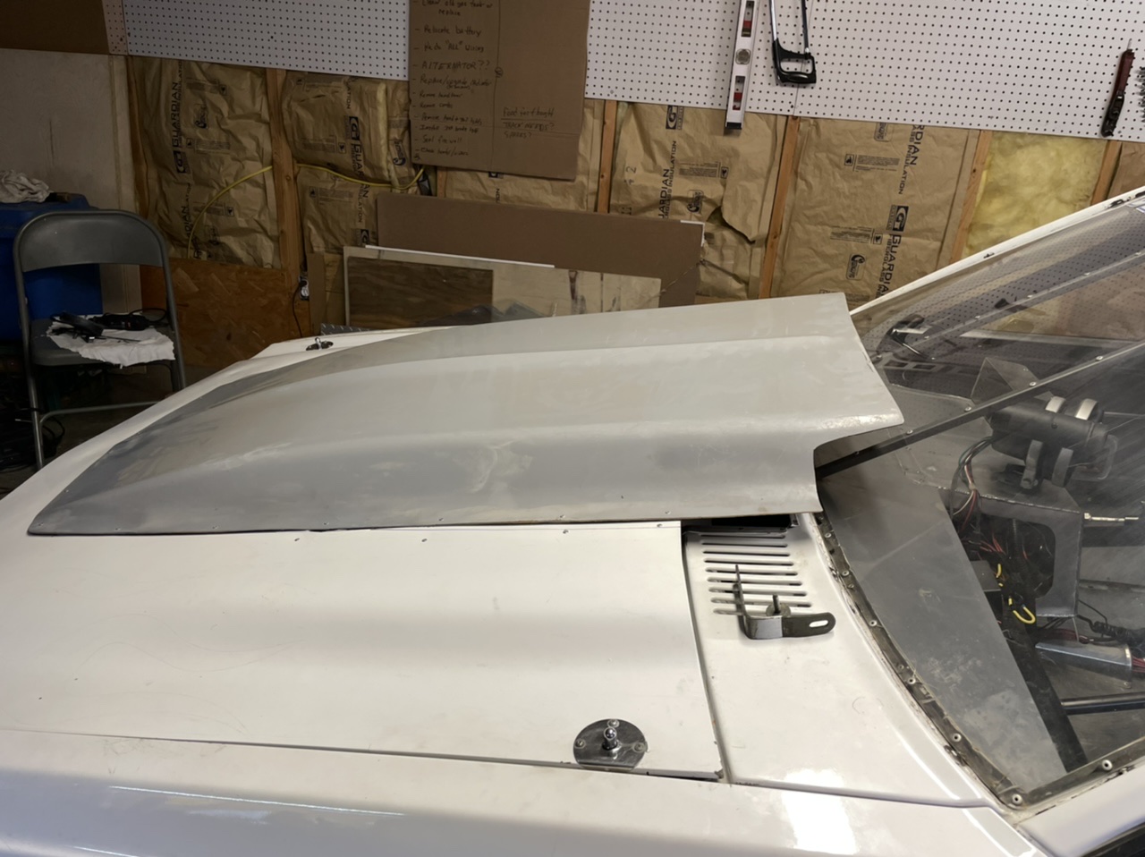 You could see the hood trying to lift as you went down the track. I am hoping this design will offer better aerodynamics and slow the air down to feed the engine better.