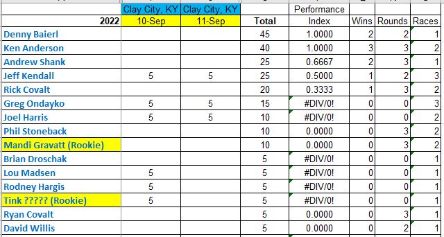Someone named "Tink" raced with us at Clay City. That's all we know.