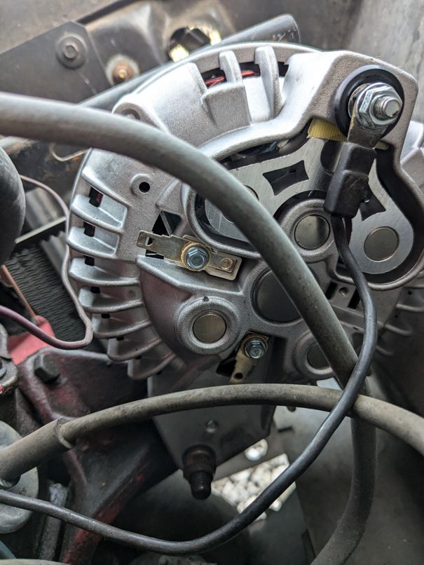I grounded the other terminal on the back of the alternator to the alt body/bracket and started the car. It charges BUT it shot up to over 16v in about a minute at high idle so I quickly shut it off.