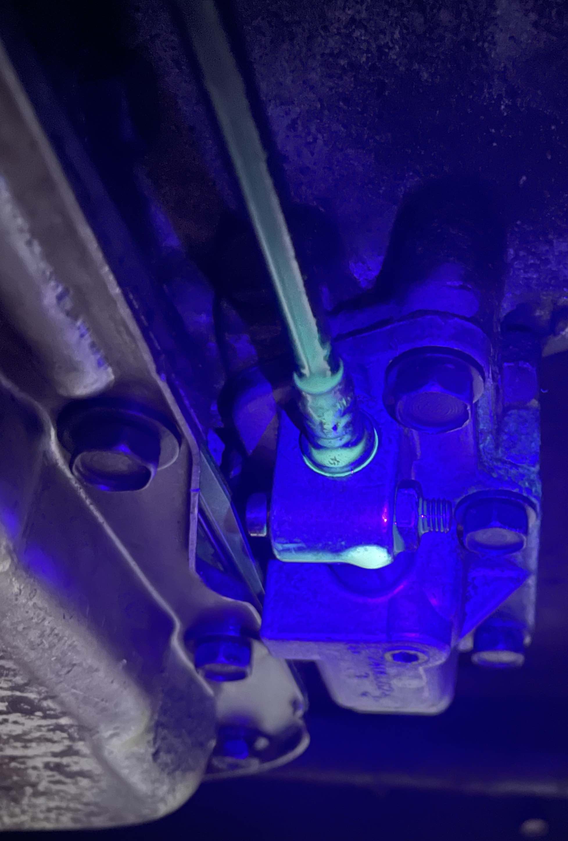 I power cleaned the underside of the trans, refilled it and deployed the dye. Drove the car a bit, and last night, this is what I found. Fortunately, there appear to be no other leaks at all, other than at the park-lock mechanism.