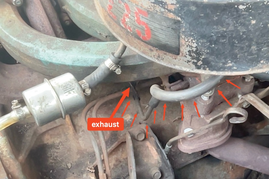 That nipple connection under the air cleaner is already connected to the exhaust manifold underside via rubber hose
