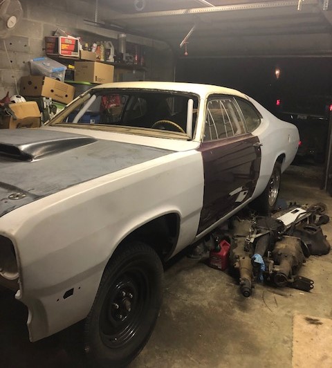 74 Duster, 225, rear-mounted blow through turbo at 12psi boost, street/strip car