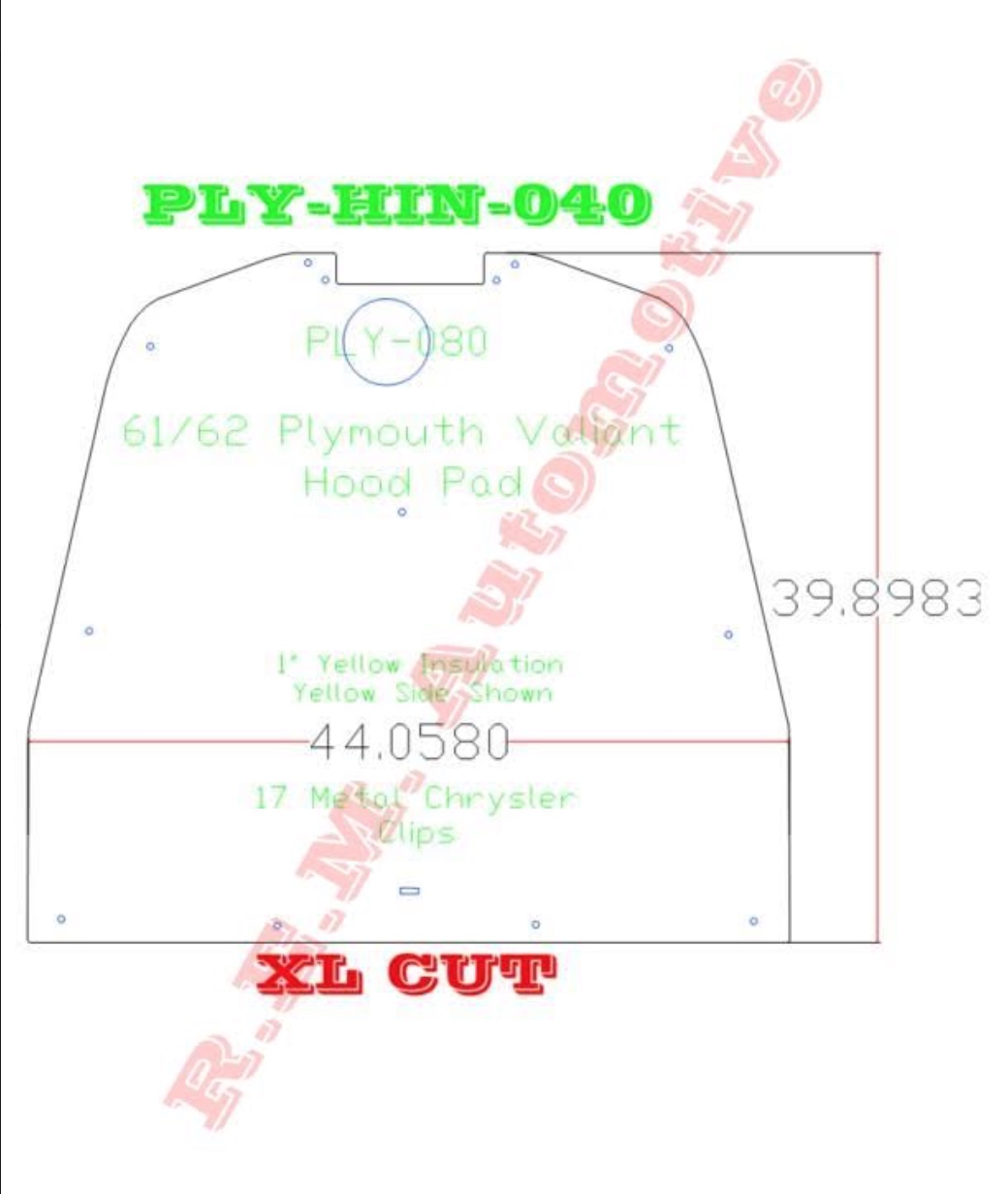 Hey, interesting! Is the new DMT hood insulation pad die-cut like the original, with the triangular sections cut partway through the material to nest up into the underhood webbing? I ask because up to now all the repro '60-'62 Valiant-Lancer pads have not had that, so they don't nest with the webbing and take on a poofy/tufted appearance once clipped to the hood. I'm not seeing any of that on your install, hence my interest.