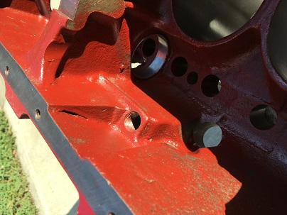 progress on the motor block inside: Gyptal 1201 Red Enamel outside: IH Engine Red concerning the casting defect shown in the second photo...... Chrysler had a grey iron foundry in Indy through the early 2000's. Called the Tibbs Avenue Foundry, had previously been The American Foundry. Its all gone now..... They implemented a molding upgrade in the mid 80's called Impact Molding. One disadvantage of Impact molding was it produced very hard molds. A hard mold will have lamination that will break free and float when shocked by the hot metal inflow. I believe the photo is a mold scab. If the mold scab had floated to a bearing bridge or head face area it would have scrapped this particular casting. As it is, it resides in a non critical stress area, does not leak,,,for me is an interesting curosity.