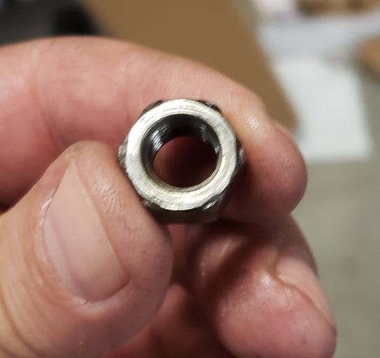 There are 4 marks on one side of cap nuts. The other side is smooth. Which side goes toward the rod? Some are shiny on one side and others are shiny on the other.