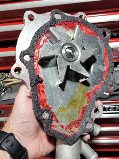 Meanwhile help with this water pump. I installed a new one during resurrection and it weeped where it attaches to the block. I don't know if it was because of the combustion pressure into the cooling system, the fact I only put high tack on the block side (messily so) and didn't bother putting any on the near impossible to get to pump to plate gasket or a combination of all that.
