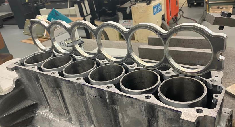 Cool, thanks. That is perhaps better or at least more elegant that what I was thinking. Mine would be easier to make. I think you could just mill the outside of the block down about 1/8", then make a flat plate that would slip fit around the cylinders (maybe with a light "trace" around each cyl liner with a CNC mill after locating the center of each bore) and be sandwiched between the head and block. The plate would have head bolt holes and would look just like the bottom of a cyl head but with bores that would fit the OD of the cylinders.