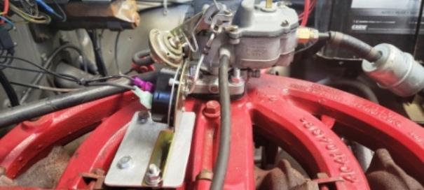 Next I bent the actuator rod to attach to the carb, making sure it moved freely. I also placed a stainless washer on the rod where it goes into the actuator body to keep it moving in a straight axis, using new speed/push nuts to keep the rod in line with the actuator body.