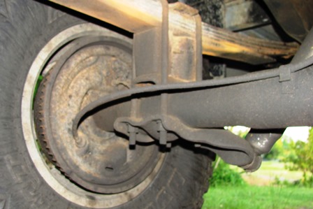 We clamped a leaf spring upside down to the back 1/2 of the spring to stiffen it up and pull the back down another inch.