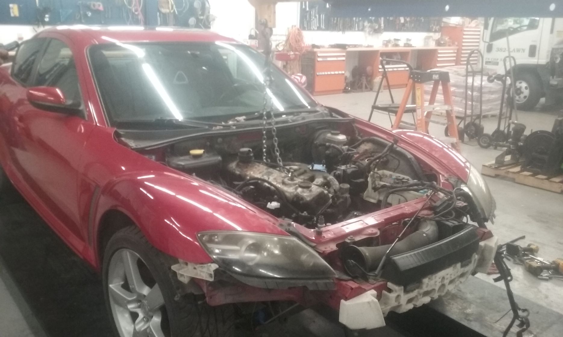 As for the weight, the slant without starter (don't need it, the Mazda starter is in the transmission) or accessories is 437 pounds. The rotary, with flywheel is 245 (close guess).I removed the oil coolers from the RX8, which saved 20 pounds, and am moving the 40# battery to the trunk. I am also replacing the electric steering rack with hydraulic, which saves 25 pounds.. So I don't think weight is a problem.