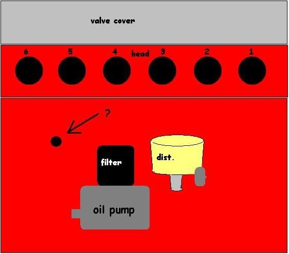 What is the little plug bolt that is located about 5 inches below the 5th and 6th plugs on the distributor side of the engine? Is it a place to put an oil pressure sending unit? Or maybe for a temp sensor? I'm at work and don't have any pictures of that side of the engine, so I made this really craptastic mspaint to illustrate what I'm talking about.