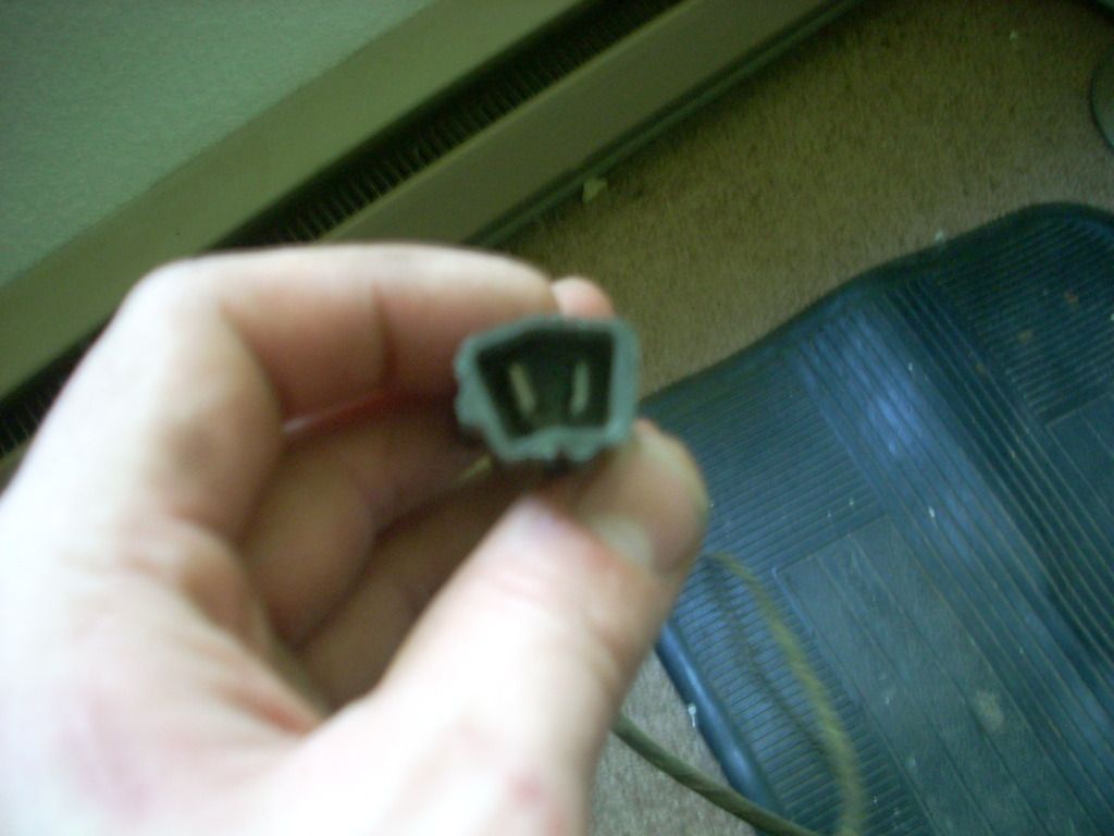 However, there is this two-prong (female) V-style plug on the wall left to my (left foot, driver) that has a Grey and Blue wire. The male end appears to have become disconnected years ago and I think this might be the missing link...here is why...Male end is 2'