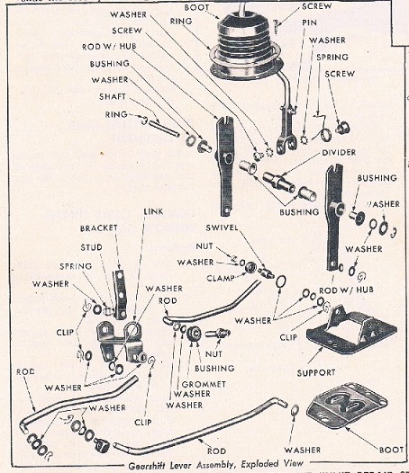 Im looking for any pics, diagrams showing parts and installation of the /6 3speed manual floorshift from the hump down to the rods including brackets, supports, ECT.