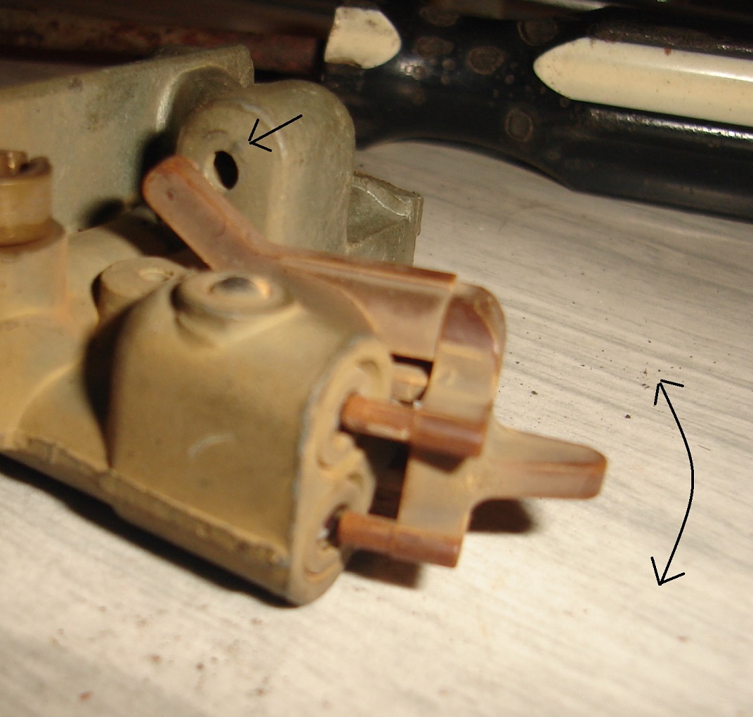 I got my Holley 1920 torn down. The economizer block on my carb. moves side to side. It seems like a lot. It pushes against two check balls below the pivot point and it has an arm that looks like it pushes up on a third.that is above. It looks like it could miss the third check ball due to this movement. Does the pin that holds it in place move? It seems like it isn't all the way in and in the hole on the back side of the block which is allowing the side to side movement. Curved arrows in pictures show direction of movement. Single arrow shows third location actuated by the block. After cleaning should I tap on the to try to get it all the way in?