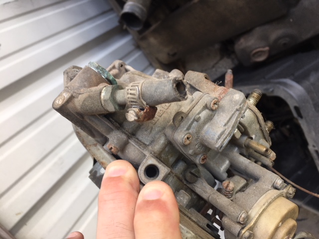 That's probably a fair deal for the Weber carb, even if it needs a rebuild. I think those go for ~$300 new. One thing I like about these is that the throttle linkage points the right way for the early-60s stock mechanical throttle rod, so you don't need to convert to a cable throttle. On this one, it looks like someone may have just cut off the U-shaped linkage from their stock single-barrel carb, drilled a hole, and bolted it to one of the holes on the Weber linkage plate (or whatever it's called).