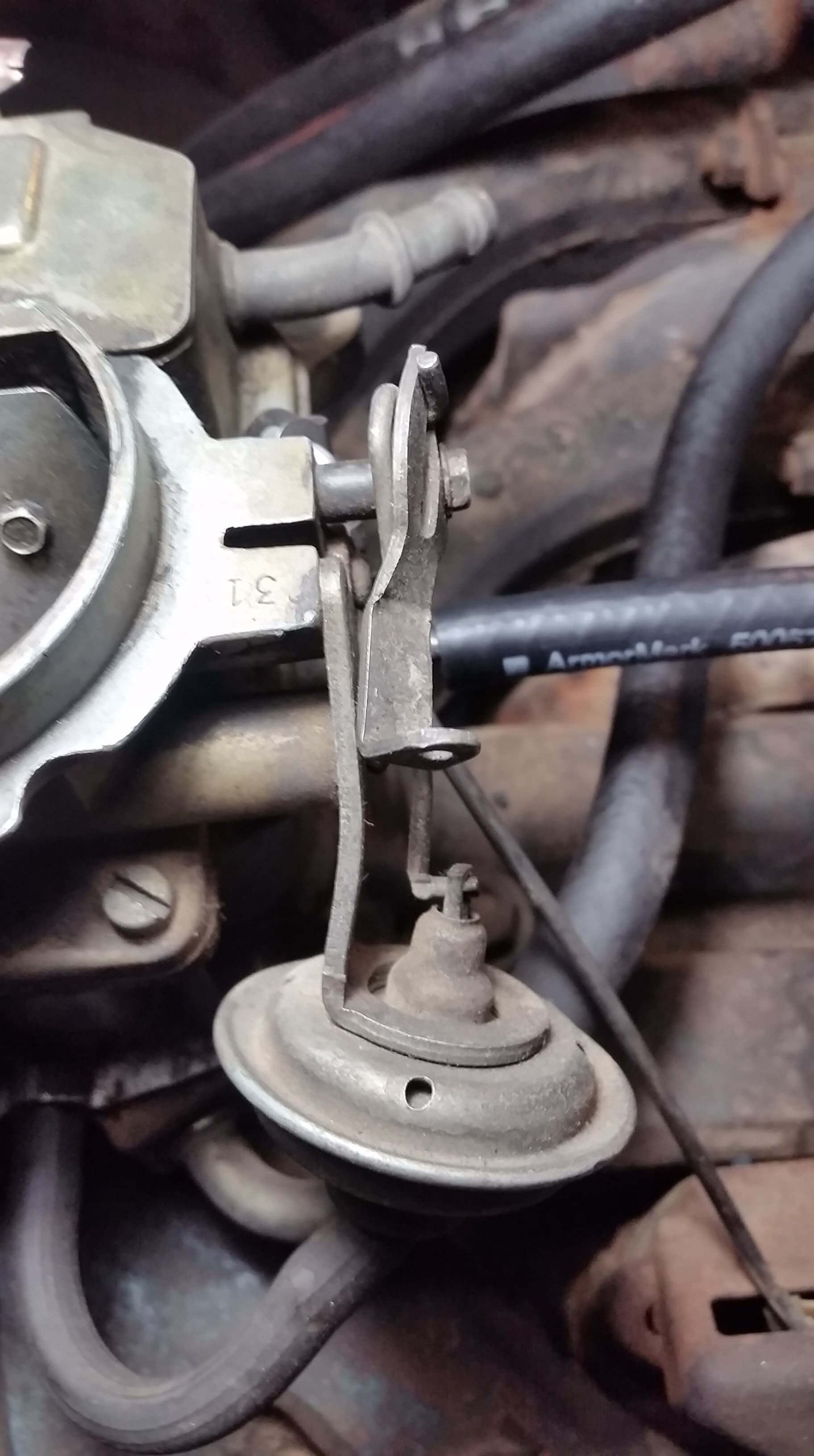 I have a Cater Carburetor on my engine and after viewing several grainy YouTube videos of the same time I believe it is damaged. As you can see in the photos there is a actuating arm of some sort which should be connected to a spring leading into the engine. As I understand it, as the engine heats up it draws or pushes the spring which activates the arm and adjusts some sort of vacuum...thing. Real technical description, I know. Can anyone confirm this?