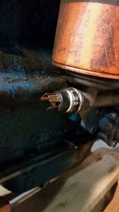 Ok, re-reading my reply, I left out that what you're looking for is screwed into the oil pump housing, and points toward the rear of the engine. (Just in case I wasn't detailed enough.) If that's where your looking, and what you're seeing is more of a plug than a sender, then someone has removed the sender and put in a plug. I thought your intentions were to have a pressure gauge on the engine while you were testing it out of the car. (And yes, the original sender was either an electrical switch for the light, or sender if the vehicle was outfitted with a gauge in the dash.)