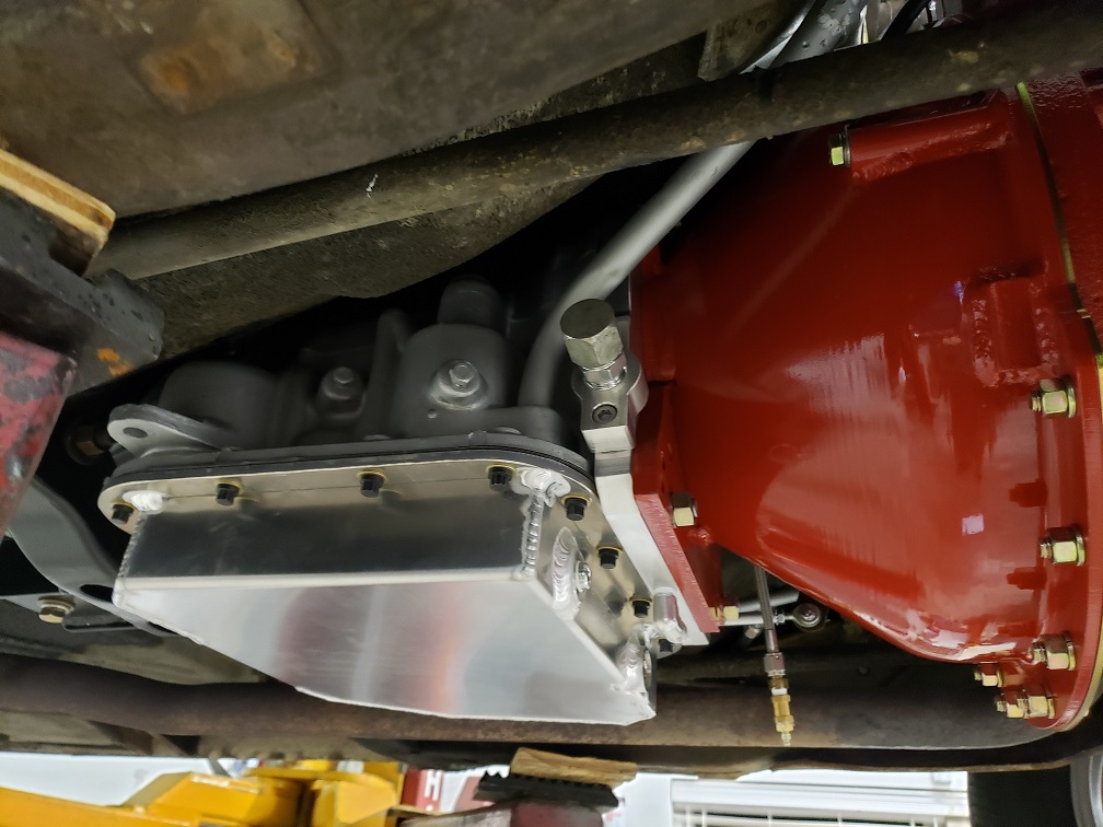 These pics show the trans in the car with the hoses installed. I'm still waiting for some material to make the clamps I want, and some exhaust shield, so ignore the hose clamps on the exhaust, etc. The small black hose coming out of the bell is the pressure side of the TO bearing and the other hose is the bleeder. Then, the larger black hoses are the suction and feed for the trans itself.