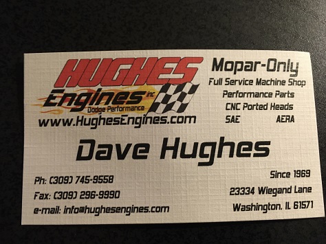 I has been a year or so since I talked with Dave at Hughes and most of my discussions were around helping Dan Foley (Mopar Muscle) with his 66 Dart project.