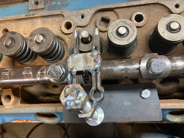 The lower base supports the jack screw. Used two 7/16 bolts - nuts. Filed the 7/16 nuts to make them a snap fit into the cylinder head bolt holes.