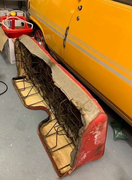 I have taken out the front bucket seats and the rear bench to get new foam filling, but I'm wondering how to get the backrest out. It is attached on the top of the backside to the bag where the convertible roof is folded in.