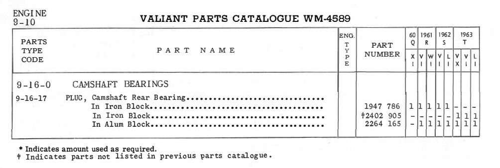 | Camshaft plug size differences? what is the switchover year? https://slantsix.org/forum/viewtopic.php?t=67570 |