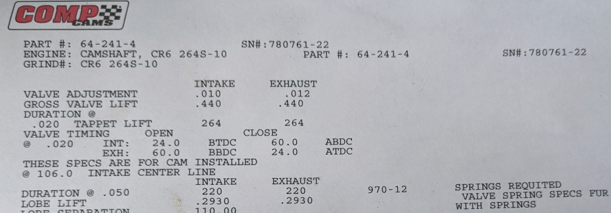 Enough-more-than-one instances of the engine not running satisfactorily/not up to expectations, no matter what was tried. In general I dunk on Comp because last time I checked (admittedly, quite awhile ago) they just more or less use Chevrolet lobe profiles on everything they offer. Everything relevant to us, anyway. That by itself doesn't make their products poopy, but it does mean their cams don't take account or advantage of the larger-diameter Mopar lifter, nor the other Chrysler-specific engine characteristics. That 0.012" exhaust tappet clearance spec is rather small; you might find yourself wanting to open it up.