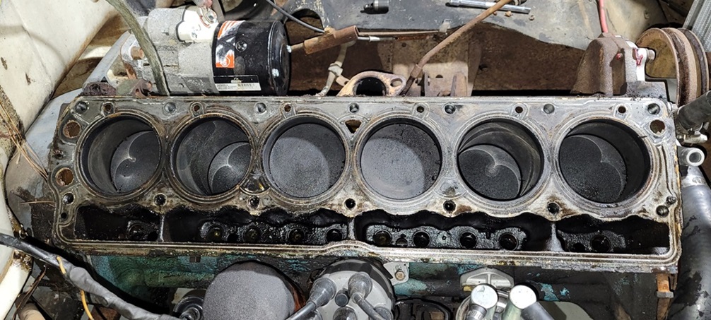 I'm working slowly and in short sessions. Got the passenger side of the engine stripped and just got the manifolds loose. They're in a bind with the exhaust pipe so I need to loosen it so I can get enough droop. The manifold nuts were about the nightmare I expected. None broke (but I did break one on the divorced choke thermostat :( ) but 4 did come out with the studs.