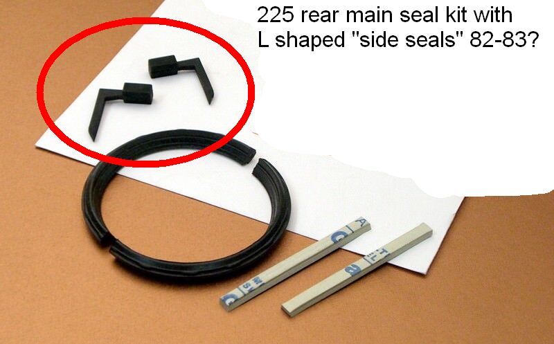 The first gasket kit I bought was missing these little "Side Seals" for the rear main seal cap assembly and the gasket kit manufacturer informed me they only had these side seals in the slant 6 from 1982 to 1983. (see attached) And there was a "B" version of the gasket kit for 1982-1983 engines.