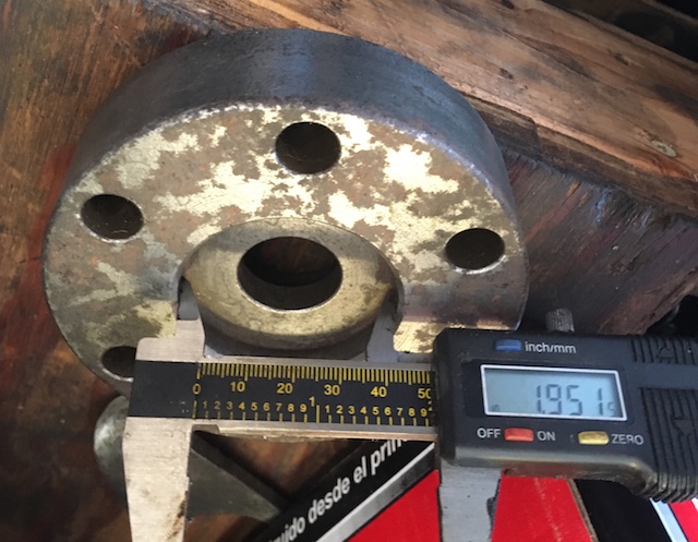 So my question, then, is does the pocket on the flat side of the crank spacer fit over the flange on the slant crank? It must, because the flex plate must bolt directly to the torque converter and the raised lip on the crank spacer fits the hole in the middle of the flex plate. So I think I have the crank spacer orientated correctly in the picture above. If that is true, no spacer ring is needed, just a quick trip to a machine shop with a lathe to open up the pocket on the flat side of the crank spacer to 2.165 inches.