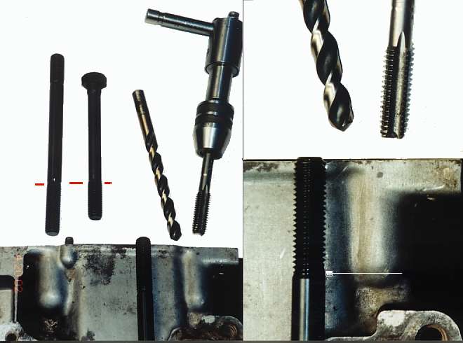 the length of the Alm. block's bolt bosses. The stud's course thread