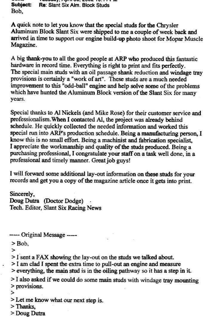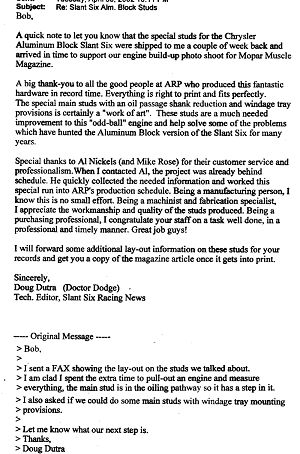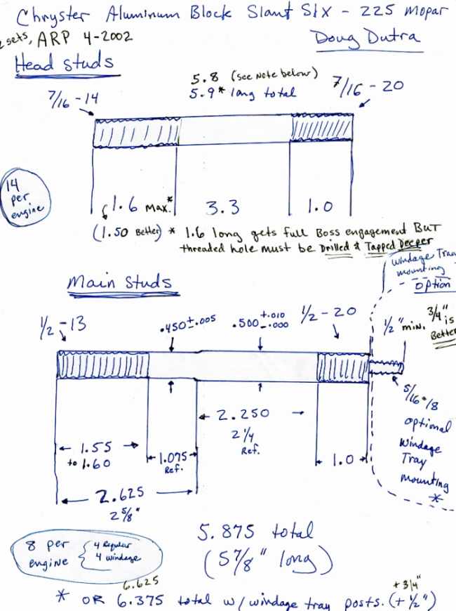 Aluminum Block Slant Six uses special extended thread length cylinder