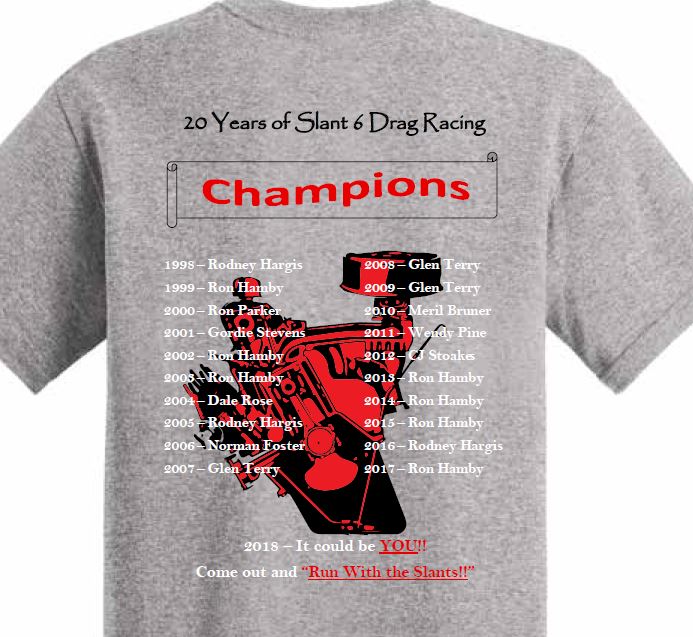 I finally got the T-shirt figured out with the local printer. This is a fund raiser for the Racer's Reunion at Clay City. The shirts are a good quality Gildan brand and you have several color options. There are some long sleeve options and I even thought of Will Burns and asked them for some Tank Top options! :wink: