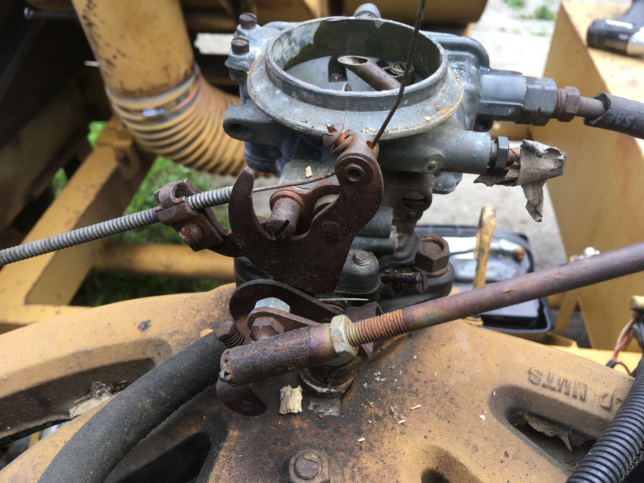 OK - The last of the photos. I wonder if the linkage between the governor and throttle should be adjusted. There is quite a lot of slack in it, so the throttle can bounce through about 1/2 of its movement. In other words, at fully open the plate is at 90°, and at fully closed it is at 0°. But when the throttle control to the governor is at low idle, the throttle plate has no restraint from swinging between 0° and 45°. Maybe the dynamics of a running motor make this irrelevant?