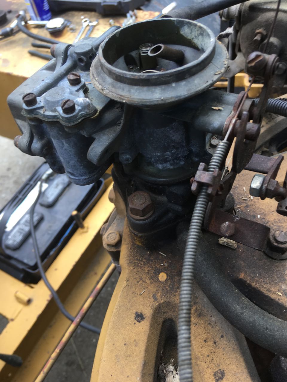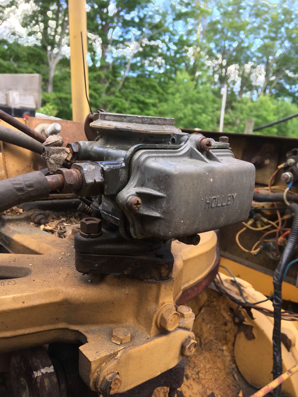 I believe what is there is a Holley 1904, and it looks a lot like the one you linked to. I did rebuild it, which helped, but it is not great. That makes me wonder if I screwed up or the core is worn out. Because this is not in a car, the throttle is connected to a governor, and the vacuum is sealed off (it is sealed off on the distributor as well). I don't really care what goes back on, as long as it works!