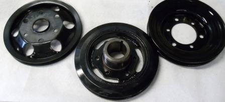 Air conditioning pulley... I have a 1966 Dodge Dart with a 225 without air or power steering. I just picked up a parts car with air and power steering. I want to transfer the air and steering. I know I need the pulley behind the damper. I removed the front pulley but one of the screw holes in the damper that is used to remove the damper is blocked with a broken screw. My question is about the difference in the front pulley and the pulley behind the damper. Are they interchangeable?
