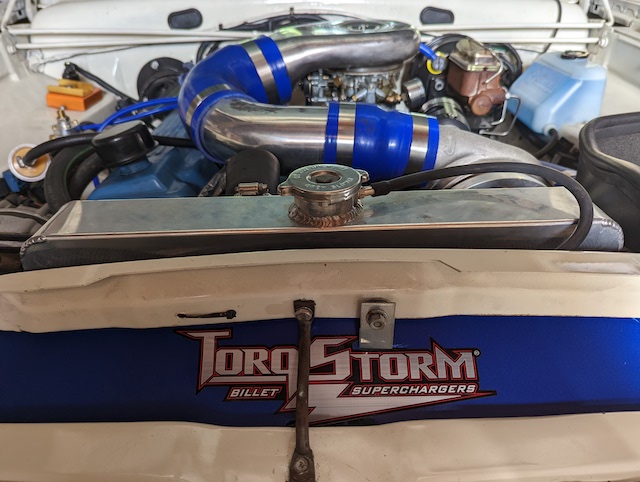 I either got a bad belt for my power steering mod or left it too loose, but the knobs started breaking off. Of course it is on the back pulley, so I had to pull everything apart. This prompted me to pull the ripcord for the smaller (3.25”) pulley on the supercharger and it helped enormously. Chris at TorqStorm sent me the new pulley and belt with very good installation instructions.