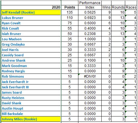 Here are the points from the last race of the season at Mason-Dixon and the final 2020 Championship points (minus the 20 bonus points for Ryan when Seymour approves his record).