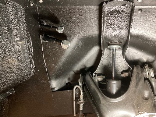 The upper control arm adjustors were set with the front bolt rotated all the way out from center and the rear adjustor bolt set all the way in.