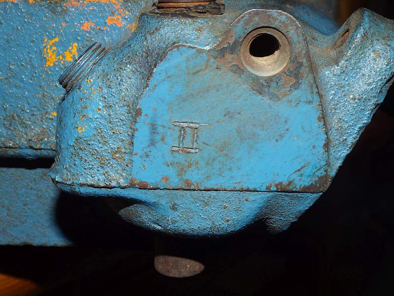 Another mark and it's an interesting one as well. At first, I thought it was a Roman numeral II, but looking at the picture, it appears more like a "77" stamped with a line underneath. That would make sense, since the head supposedly came from a 1977 Dodge Aspen.