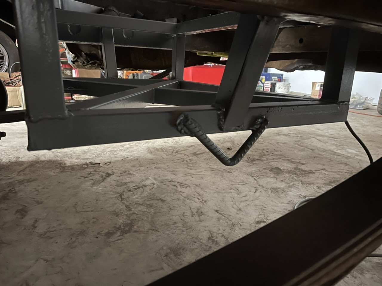 Adam welded in some good tie down points for trailer towing.
